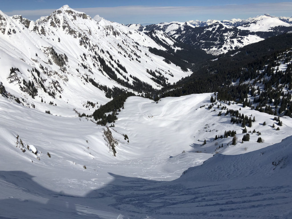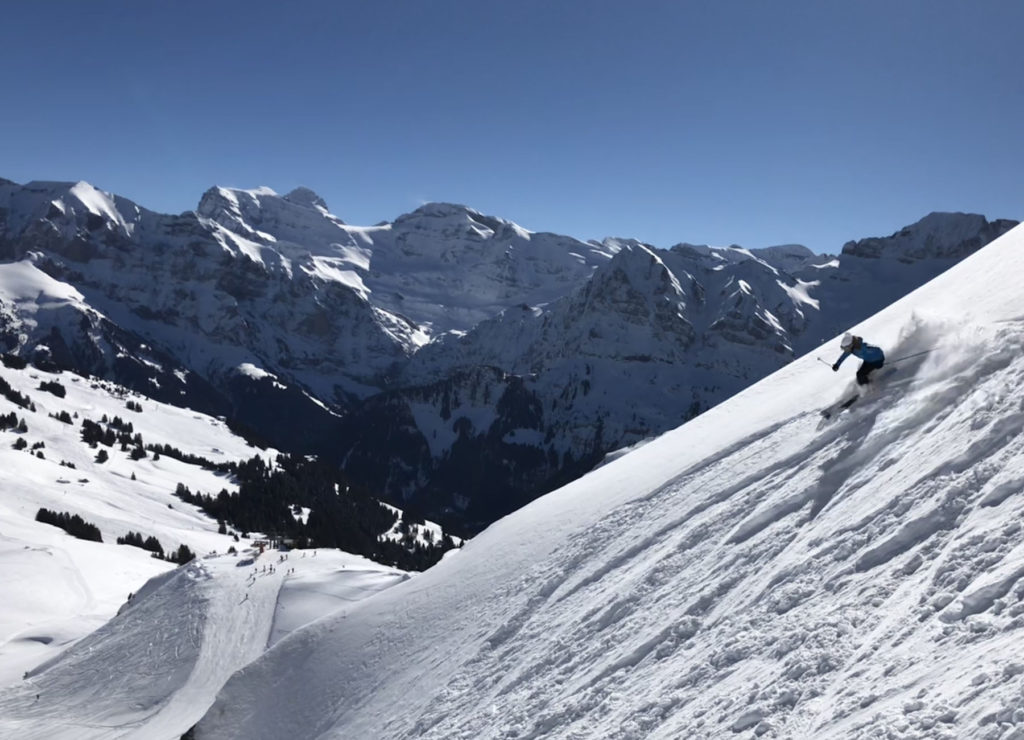 The Swiss side of Portes Du Soleil also offers some amazing off piste terrain, you are best to have a guide to explore this terrain safely. Some is gently pitched, but there are hazards of rocks and crevasses int his high alpine that a guide would know to avoid. There is also steeper avalanche prone snow fields, that look gorgeous but could prove very dangerous or worse.