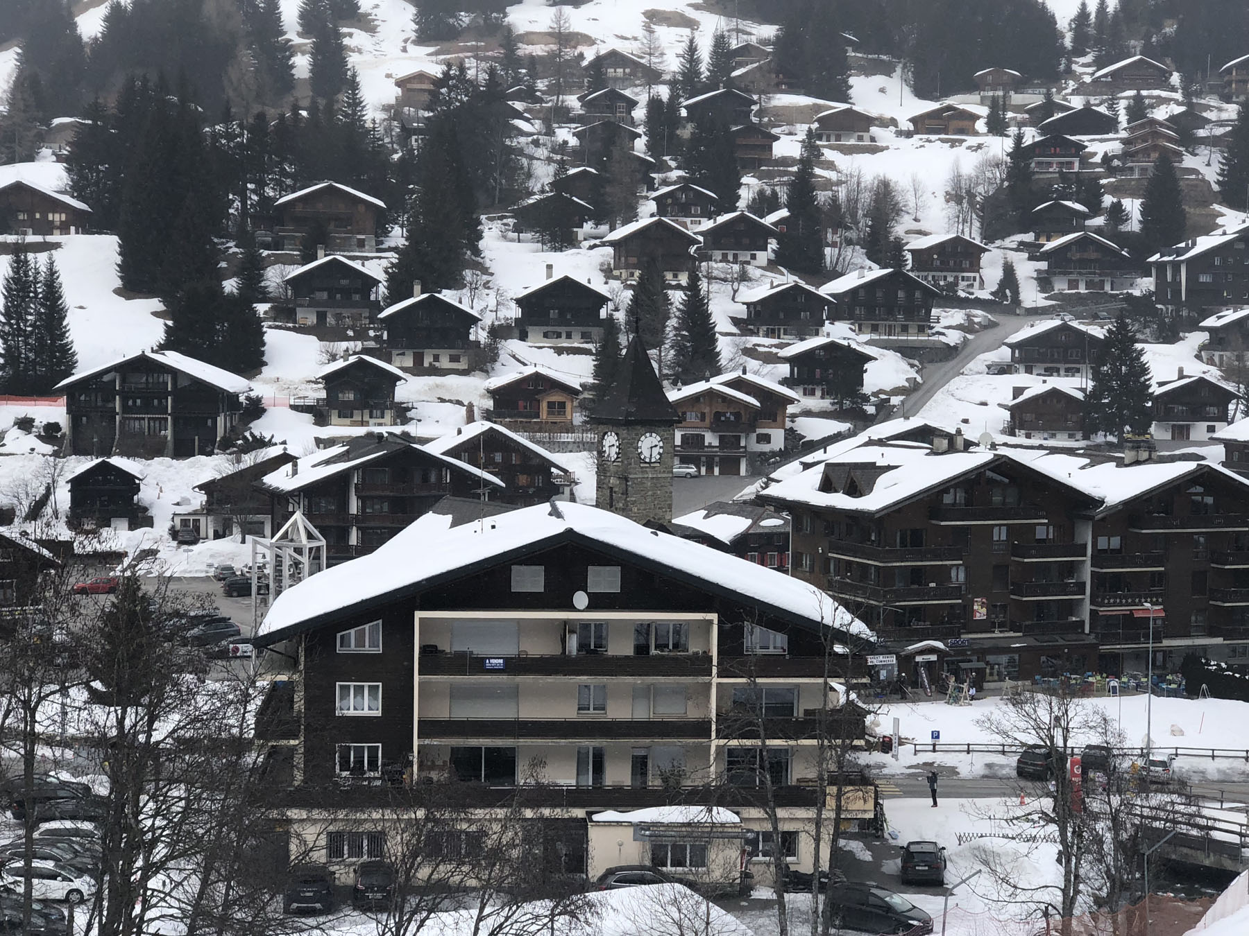 Morgins is a modest size authentic village, lots of chalets and hotels, and ski terrain in two directions, a bus is required to cross town to the ski slopes toward Châtel and Torgon, you can ski across town from Chatel back to the Swiss side however.