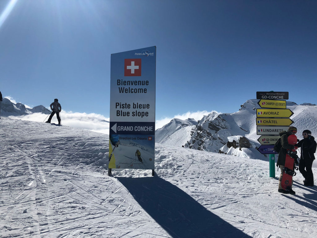 All Portes Du Soleil’s skiing is on one pass, an RFID card, so you can ski with ease from Switzerland to France, and back, no passport required. Its popular to tour the circuit, most do the PDS (Portes Du Soleil) tour clockwise, in a day, but we love skiing in a less structured tour and enjoying some of the best terrain and trails (see our Guide to the Best Ski Trails in Portes Du Soleil) not on the heavily skied circuit.