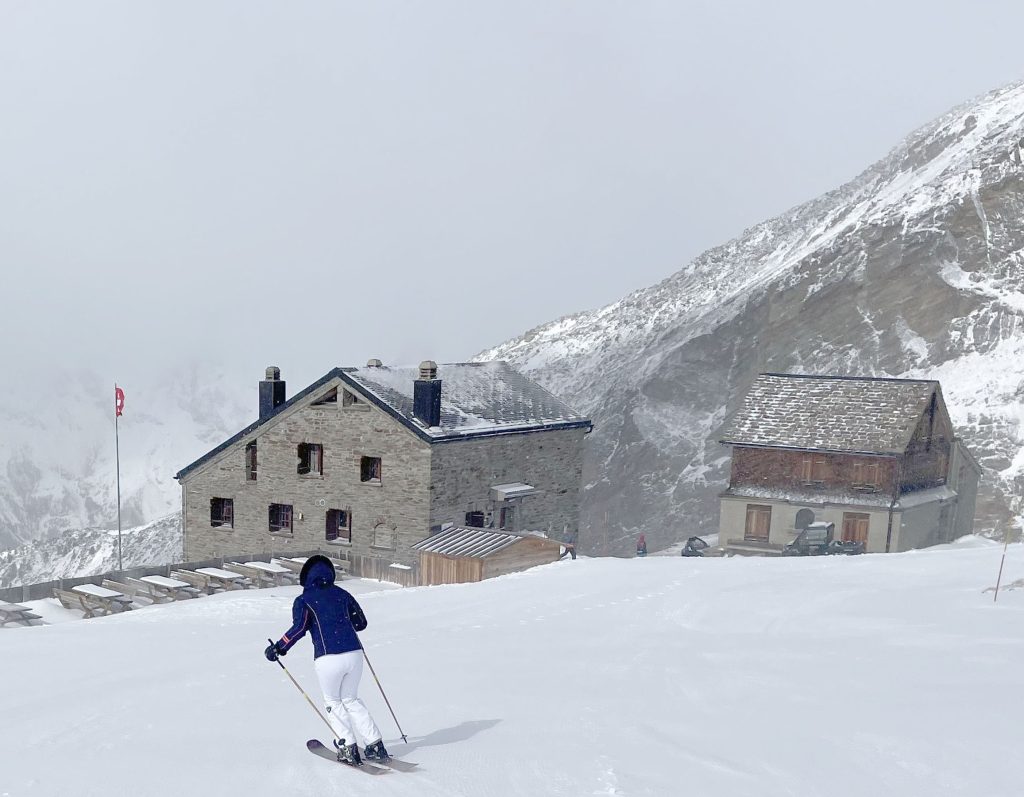 Ski to lunch on your way down Saas-Grund Piste 2, to Weissmieshutte. This rustic 1890’s chalet serves delicious food in a humble hut. You must order the “Wein Spaghetti” which is a delicious local white-wine-infused cheesey pasta dish – amazing!  You can actually spend the night in this high mountain hut, in a basic bunk with shared bath, including half board (breakfast and dinner) for under $100 Swiss Francs a night – simple, not swank, but rather extraordinary that you’re high on a Swiss mountain and have star gazing and first tracks too.