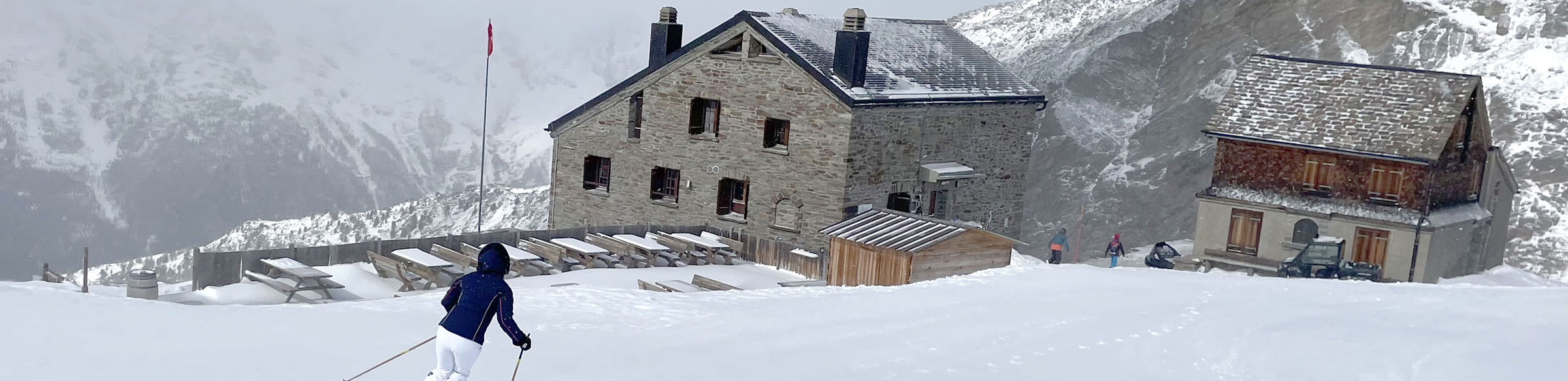 Ski to lunch on your way down Saas-Grund Piste 2, to Weissmieshutte. This rustic 1890’s chalet serves delicious food in a humble hut. You must order the “Wein Spaghetti” which is a delicious local white-wine-infused cheesey pasta dish – amazing!  You can actually spend the night in this high mountain hut, in a basic bunk with shared bath, including half board (breakfast and dinner) for under $100 Swiss Francs a night – simple, not swank, but rather extraordinary that you’re high on a Swiss mountain and have star gazing and first tracks too.