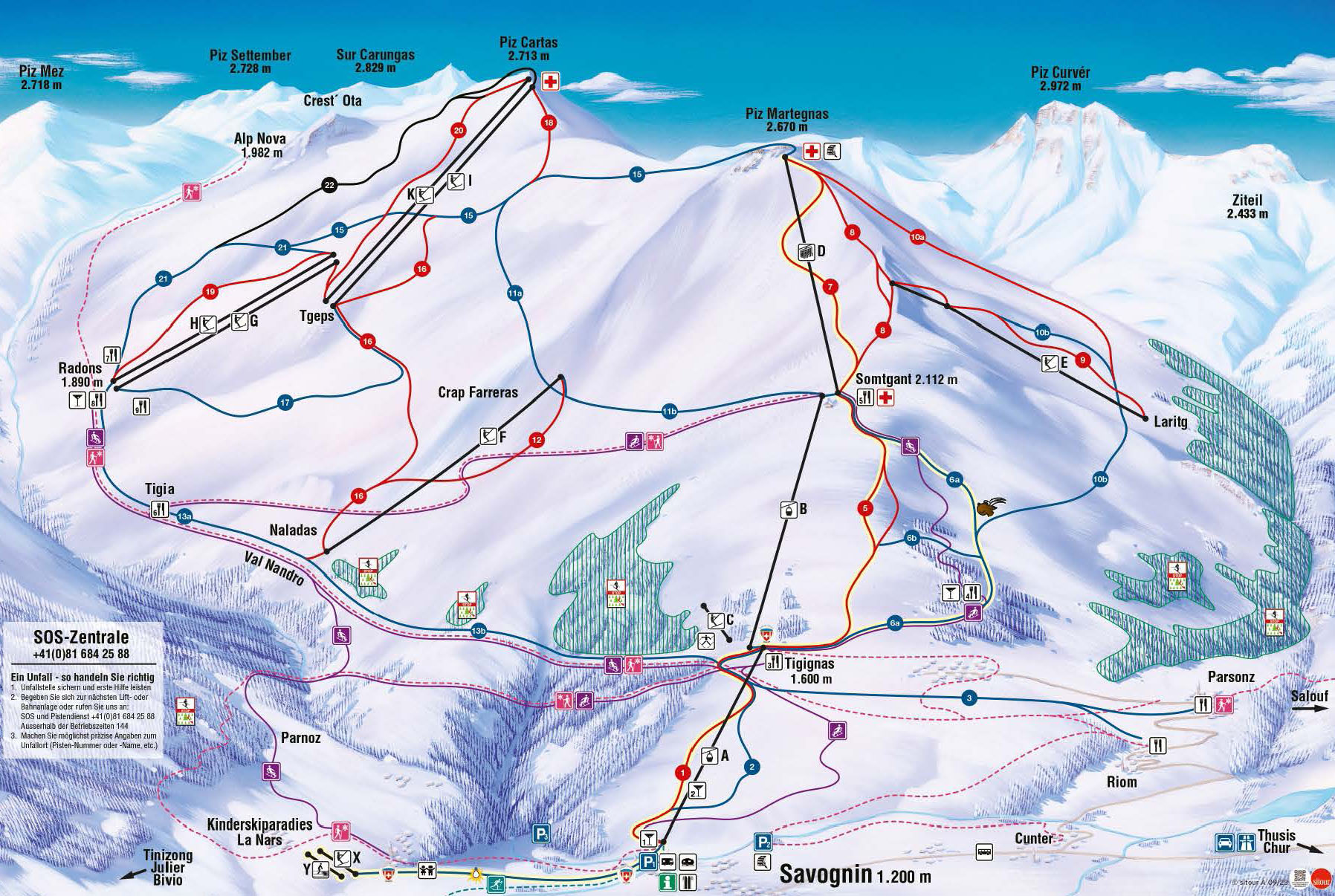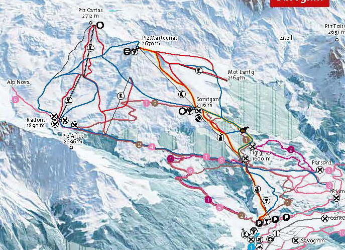 Savognin is moderate size for a a ski resort in the Surselva region of the Swiss Alps, between Arosa Lenzerheide, Davos and St Moritz. This fun mountain is definitely worth a day or two visit.