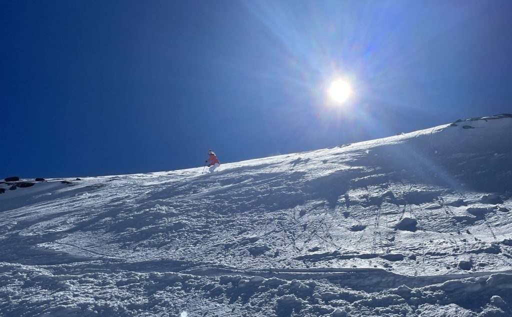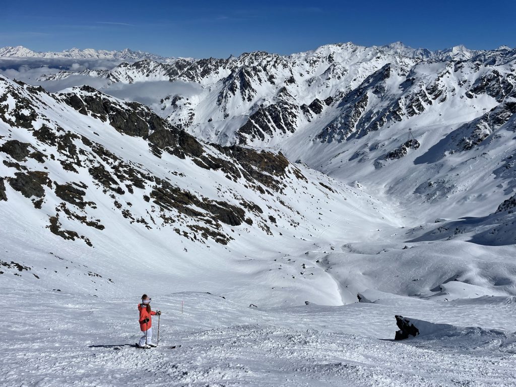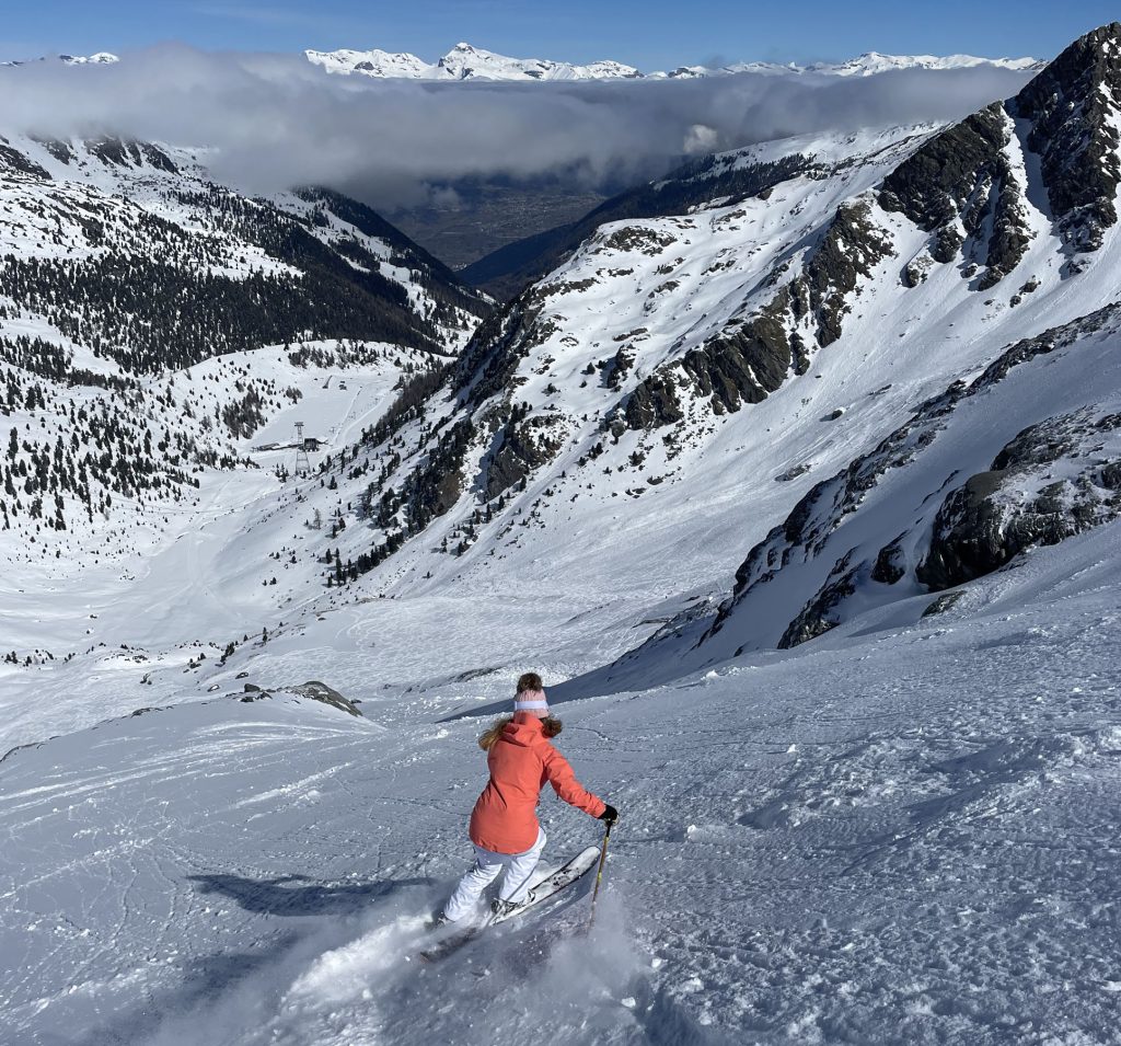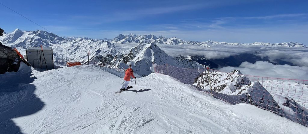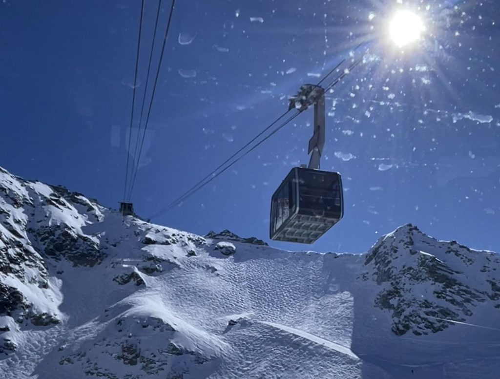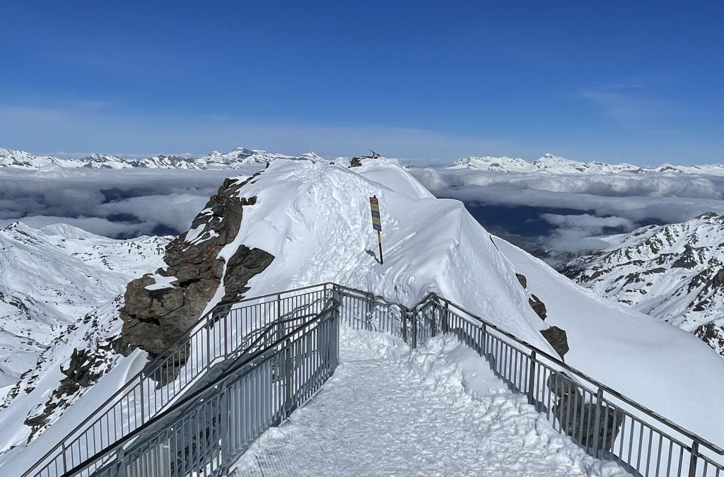 Mont Fort is also host of the Extreme Freeskier World Cup Finals. If you are an expert skier, ski the marked (steep and not-groomed) trail section – otherwise plan to download the Mont Fort tram to gentler mid-mountain skiing.