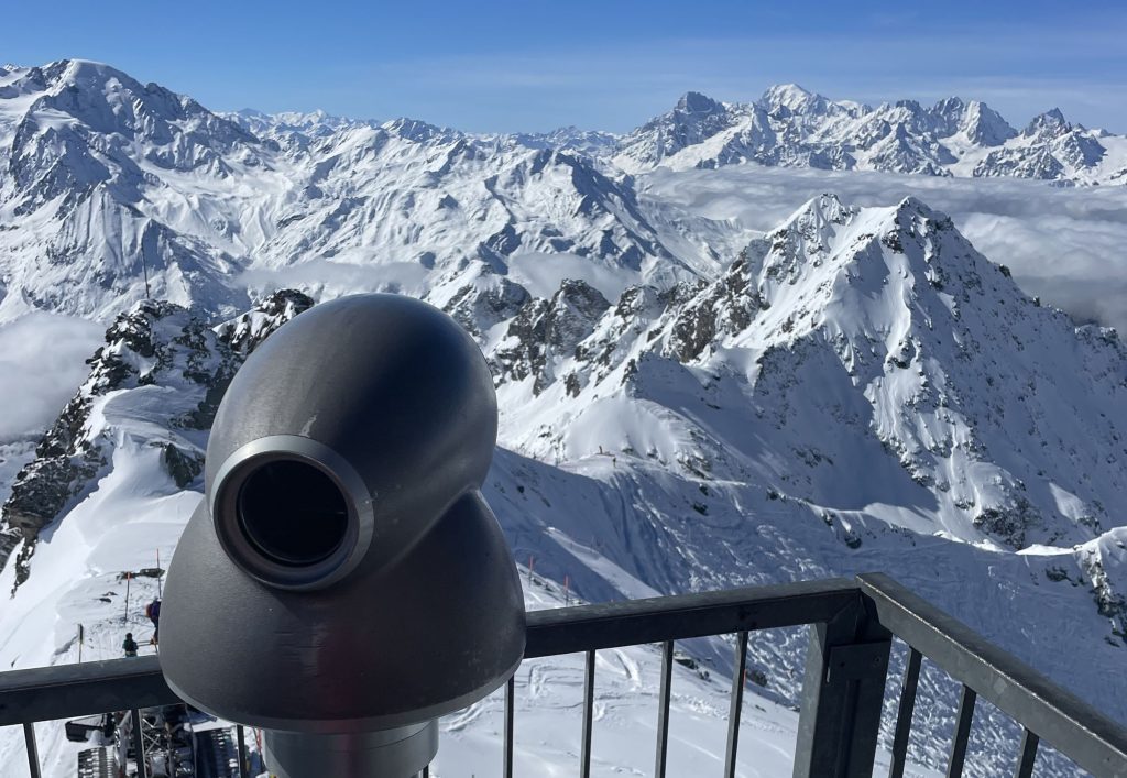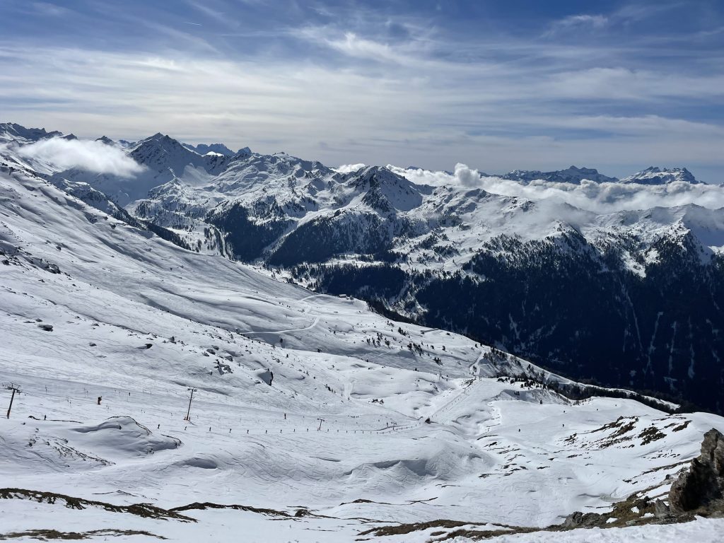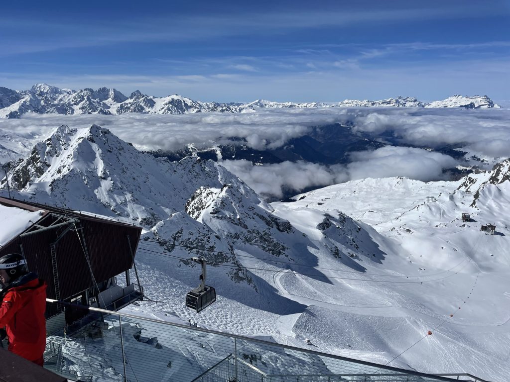 Les 4 Vallées Stats: Elevation: 10,925′, Vertical drop: 5,889′, Prepared Trails/Pistes: 254 miles, 92Lifts.