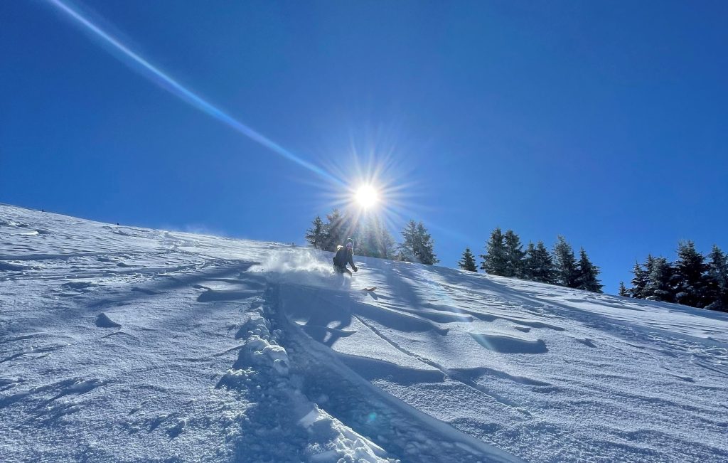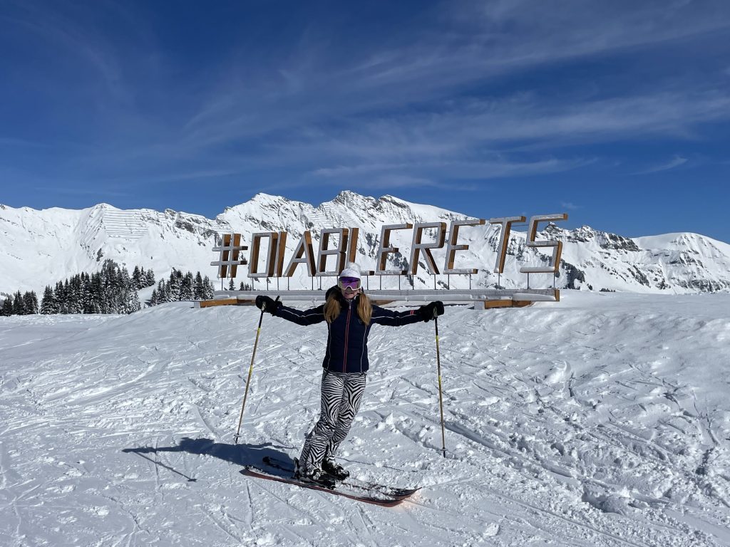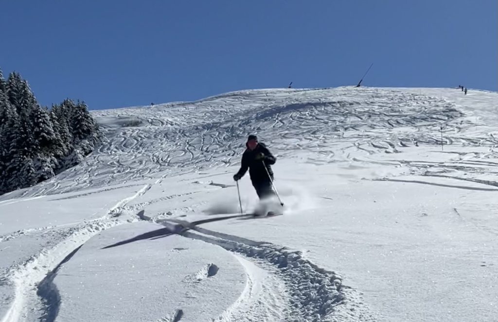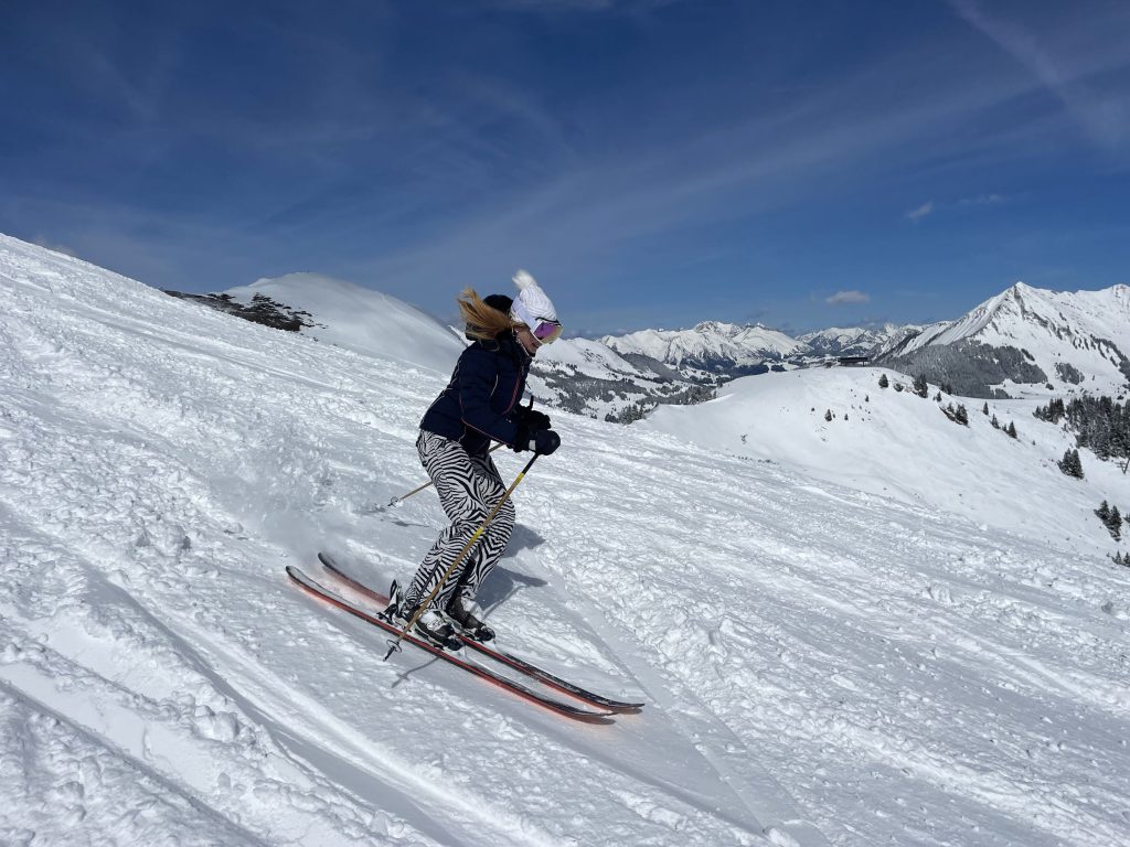 Glacier 3000 is often considered part of this ski region. This is the highest elevation, with separate terrain on a high plateau – which is a glacier – at 3000-meters (hence the name). Once you ride up Glacier 3000’s two connecting trams, the upper mountain is low angle snowfields served by T-Bars on the gorgeous glacial summit. Its spectacular. The Peak Walk atop Glacier 3000, new in 2021, is amazing – the highest suspension bridge in the world connecting two peaks. Walk it and see the wonder of engineering, and the wild drop below this wiggly bridge, admission is included with your ski pass. Glacier 3000 is also just a 20-minutes drive above the chic ski town of Gstaad. Gstaad like to claim it as part of their Gstaad Super Ski Region including Zweisimmen and Saanemoser.