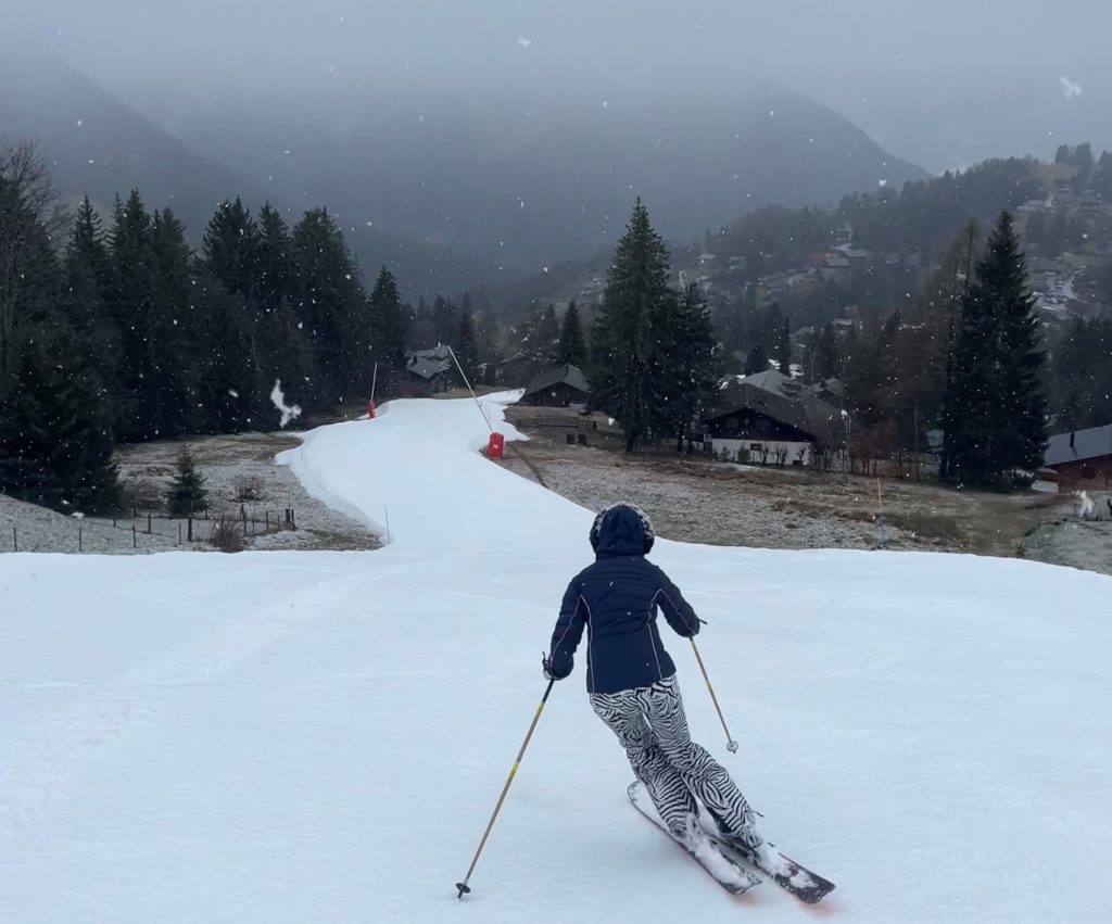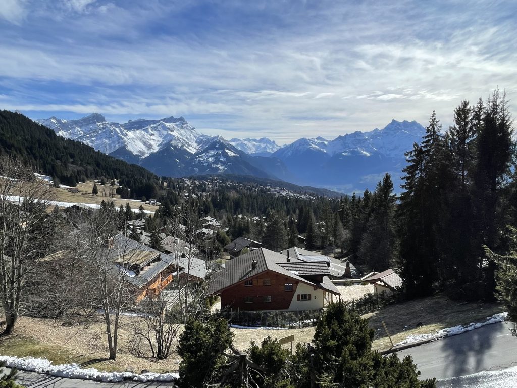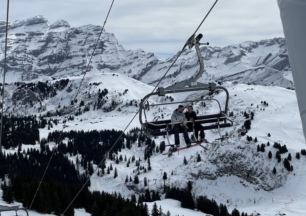 We stayed in Villars, a very cute Swiss village with lots of chalets for rent on the hillside just above the town. Arriving by day there’s paid parking by the gondola at Villars. Diablerets is more family-friendly with a learn to ski zone right at the base, hotels and apartments too. Gryon and Barboleuse are smaller, more local villages.