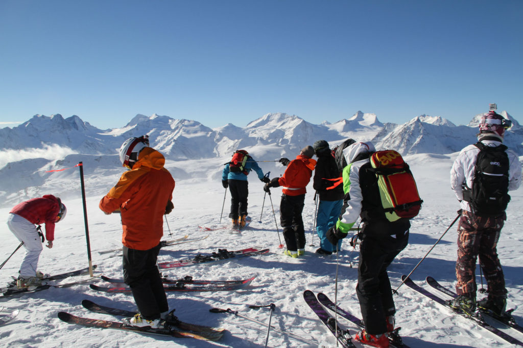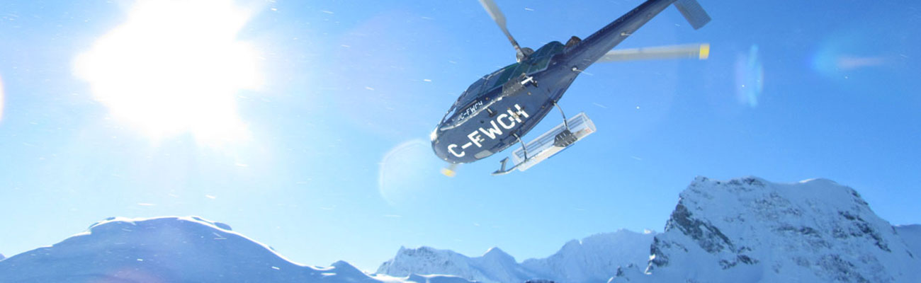 Helicopter safety instruction are also vital, like NEVER walk behind a helicopter, huddle close to the chopper during landings and take offs. Once skiing, NEVER pass your guide, ski exactly where he tells you to, and do not ski away from your group.